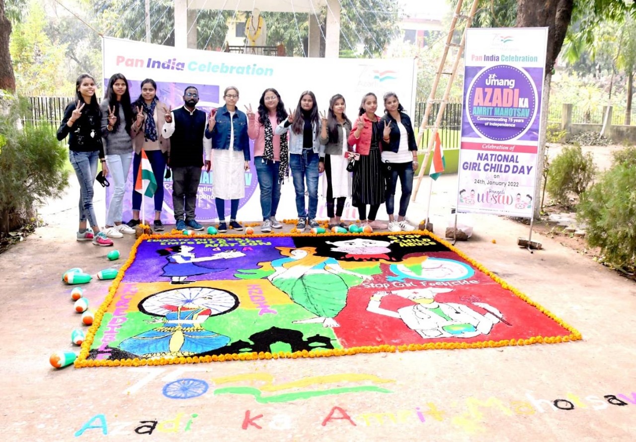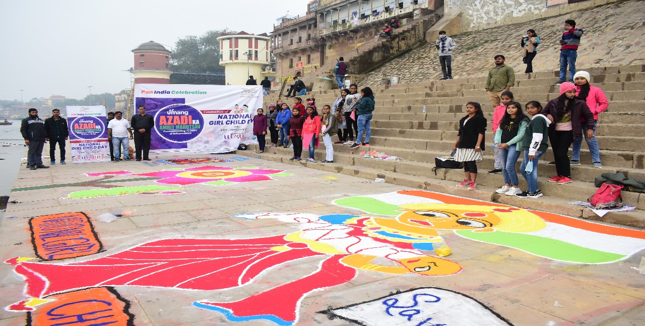 The organization USS Foundation and Parivartan Samaj Vikas Samiti, together, organized the program of Rangoli festival, on the occasion of National Girl Child Day on 24 January. In which the organization made Rangoli in front of Rani Laxmibai birthplace and Mata Anandmai Ghat Varanasi. Under the program Azadi Ka Amrit Mahotsav, Ministry of Culture organized Rangoli festival, 'Umang' on National Girl Child Day across the country. The participating teams decorated Rangoli at more than 50 special places across the country. 'Azadi Ka Amrit Mahotsav' is an initiative of the Government of India, to celebrate 75 years of progressive India's glorious history of culture and achievements. This day is celebrated every year as 'National Girl Child Day'. In this event, the participating teams decorated the streets and squares with rangolis in the name of women freedom fighters, social workers, patriots of the country.